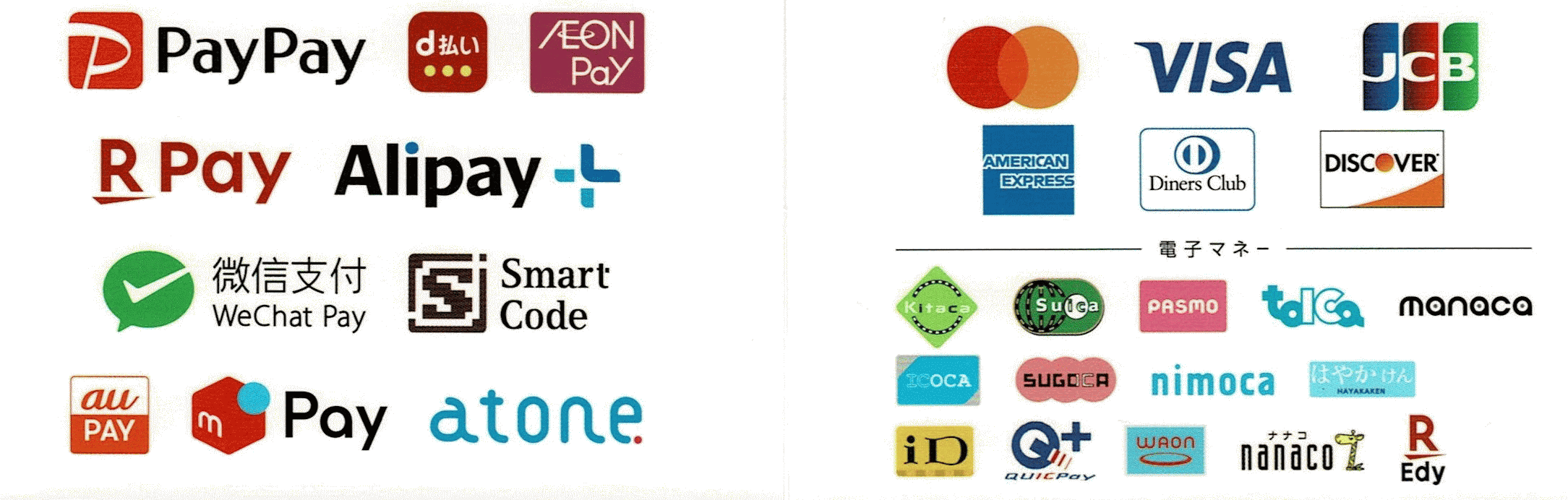 | ご利用可能なキャシュレス決済 |